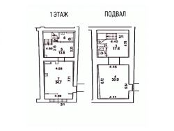 Общая площадь: 111.2 м².Первый этаж 55.7 м2 и 55.5 м2 в подвале.