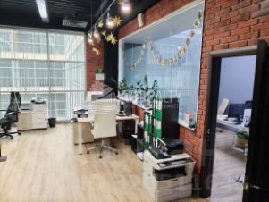 Планировка смешанная, а именно: просторный OpenSpace (50кв.м), отдельный кабинет руководителя (16кв.м), кухня (10кв.м) и гардеробная/кладовка.