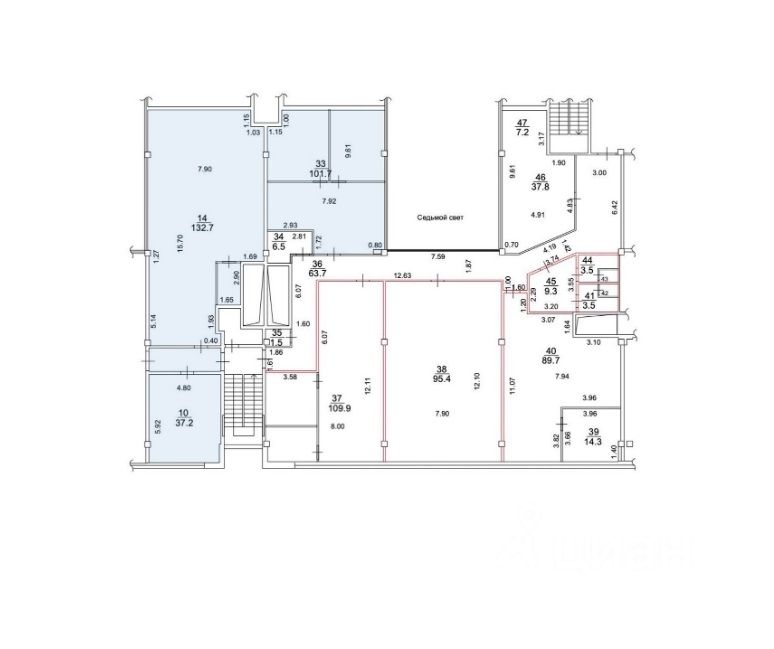 Планировка кабинетная, открытая или смешанная, некоторые офисы имеют свой санузел, некоторые офисы без соседей и т.д.