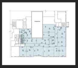 6 этаж Офис 682 кв.м - кабинетная планировка, архив, свои санузлы, душевая, кухня.