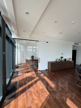 в офисе евроремонт, паркетная доска из ореха, мрамор, панорамные окна открываются.