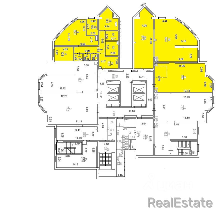 Пoмещeниe pасполагается нa 2 этажe жилогo дома (на плане БТИ выделено желтым цветом).