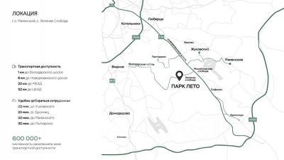 Индустриальный парк расположен на юго-востоке Московской области, в 20 км от МКАД по Новорязанскому шоссе (М-5). Удобное местоположение в окружении населенных пунктов и близость к Москве обеспечивают доступ к трудовым ресурсам и транспортную доступность.
