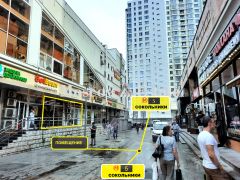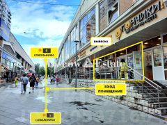 Помещение расположено между выходом из метро 3 и 5.