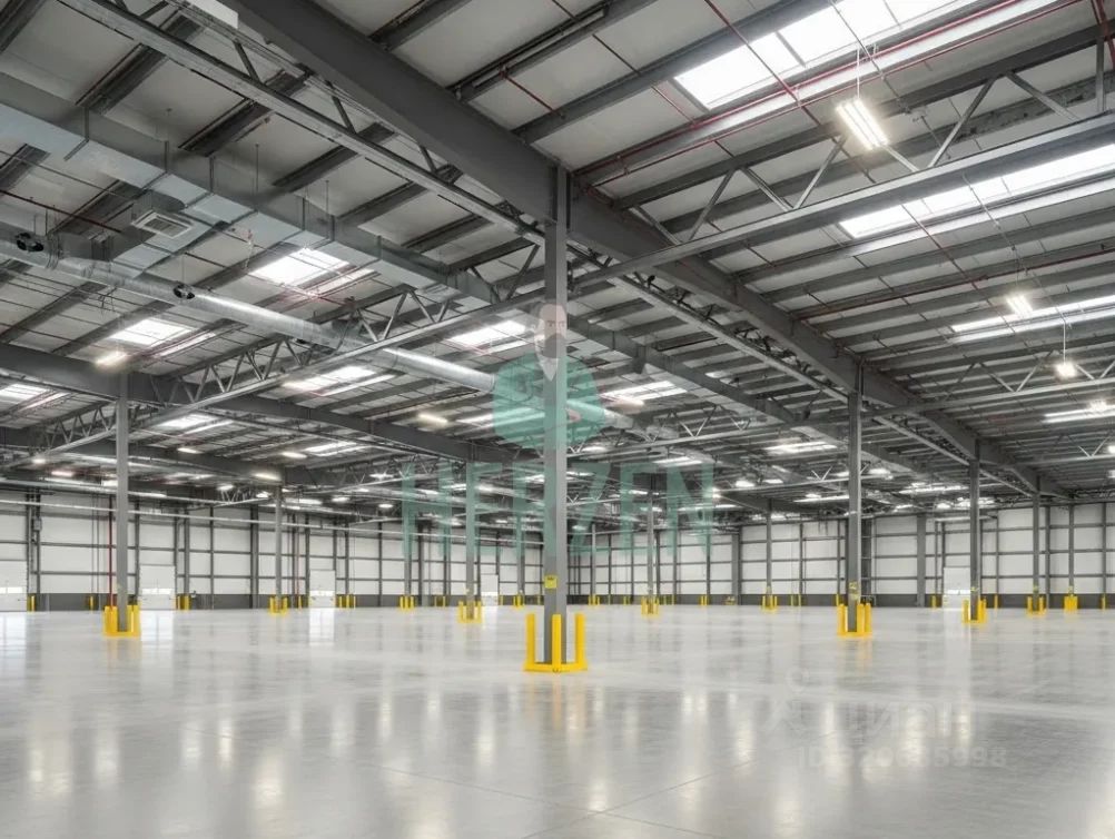 Ровный бетонный пол с антипылевым покрытием. Допустимая нагрузка на пол 7 т/м2