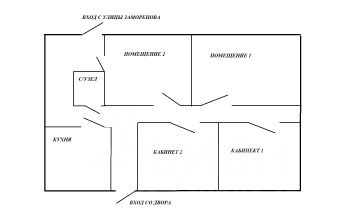 Помещение нежилого назначения: кухня, 2 кабинета и 2 больших помещения.