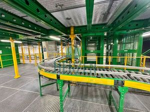 Конвейерно-сортировочная линия суммарной протяженностью 8,4 километра, по ней между этажами перемещаются ящики для заказов двух размеров.