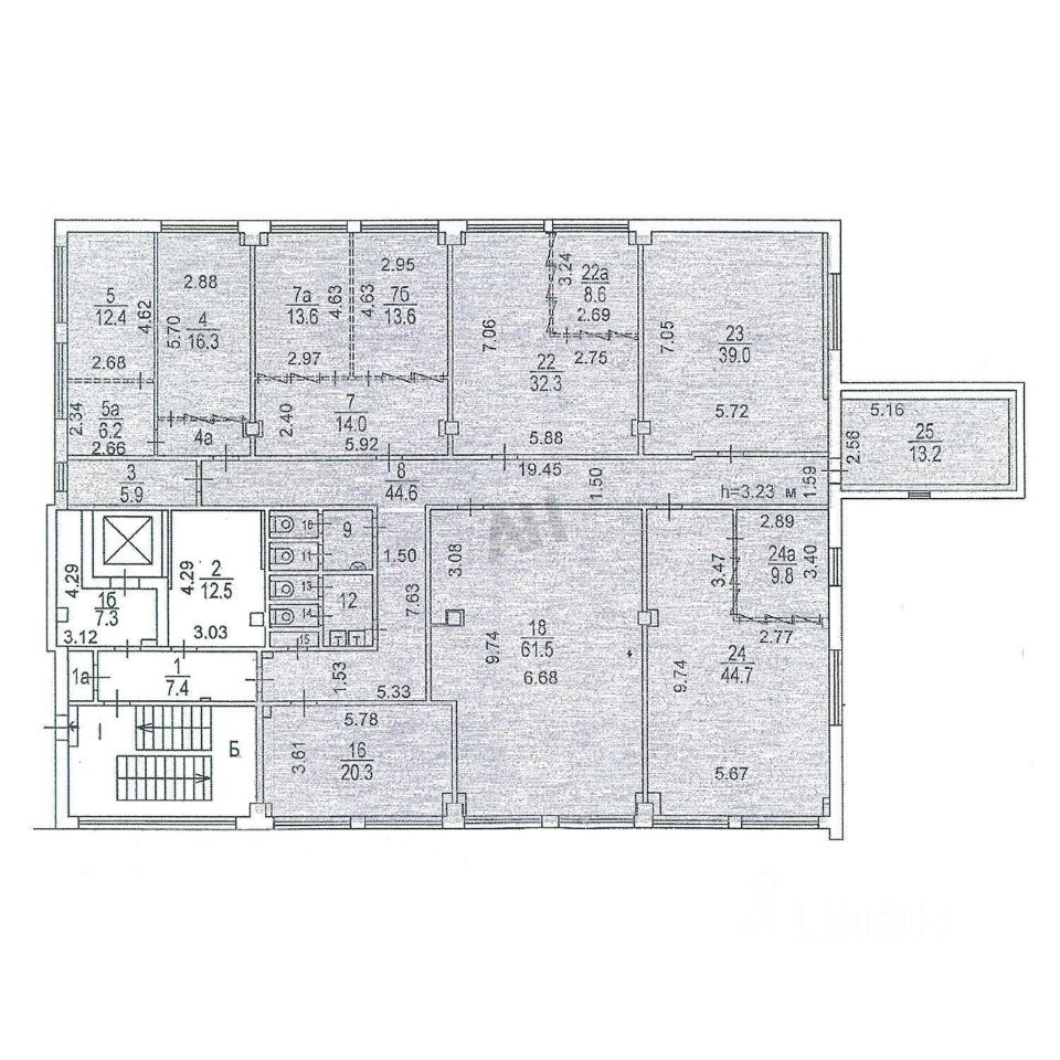 Блок занимает целиком этаж, имеет коридорно-кабинетную планировку и состоит из 13ти светлых комнат, 2 с/у и готовой серверной. Состояние- за выездом арендатора. Отдельный офис на всем этаже. Готовая серверная. Система вентиляции и кондиционеры в наличии. Потолок 3 м., стены: обои под покраску, окна пвх, дверь металлическая. Пожарная сигнализация, видеонаблюдение. Круглосуточная охрана.