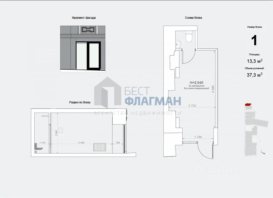 Арт. 113089170 Сдается помещение свободного назначения (B), 13,3 м²