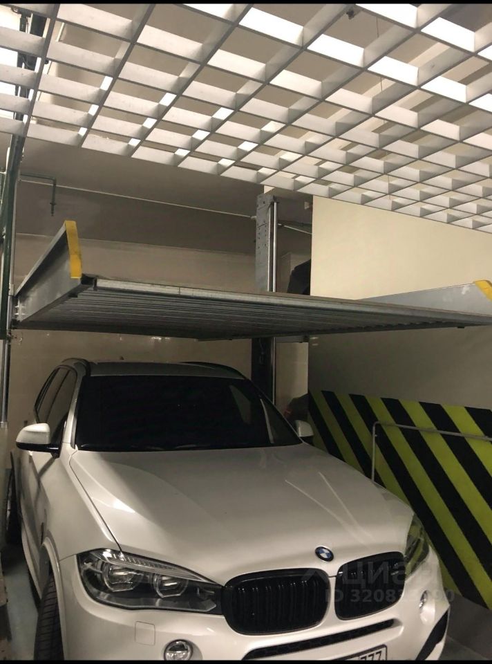На две машины, нижнее место (большой джип или микроавтобус) сзади место для большого мотоцикла, парклифт для легкового автомобиля на 2 тонны, 24 метра внизу + площадка подьемника