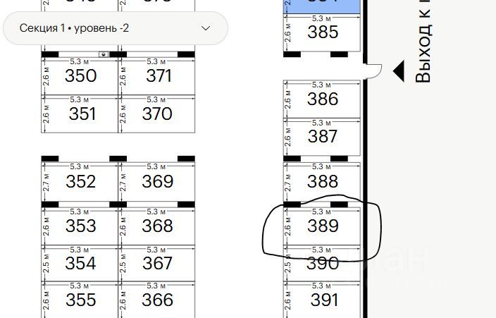 Машиноместо 389, Этаж -2 , Площадь 13,5.