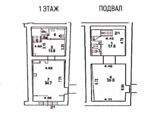 (1 этаж - 60,6м2; подвал 50,6м2).