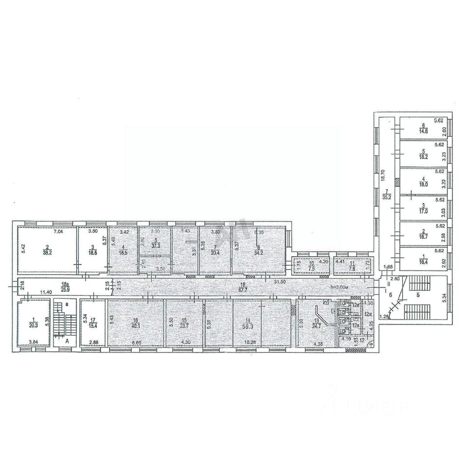 Блок занимает целый этаж и имеет коридорно-кабинетную планировку. В состав помещений входят 12 светлых комнат, санузлов, кухни и холла с зоной рецепшн. Все комнаты оснащены кондиционерами и имеют естественное освещение. Высота потолков составляет 3 м, окна выполнены из ПВХ, двери металлические. Отделка стен — обои под покраску.