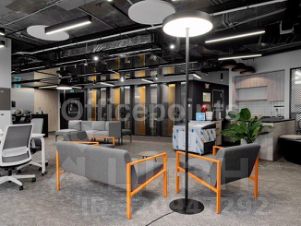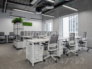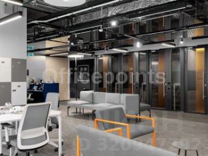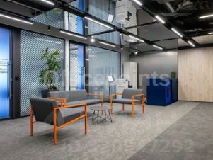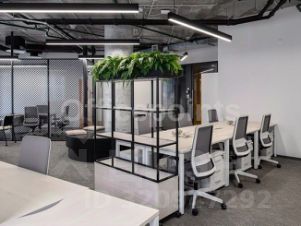 Сервисный офис представляет собой пространства премиум-класса. Оборудовано все необходимое для работы и отдыха в перерывах. Вмещает до 68 рабочих мест, оборудовано переговорными и board-room. В помещениях качественная офисная отделка с мебелью. Смешанная планировка, центральная система кондиционирования и приточно-вытяжная система вентиляции.