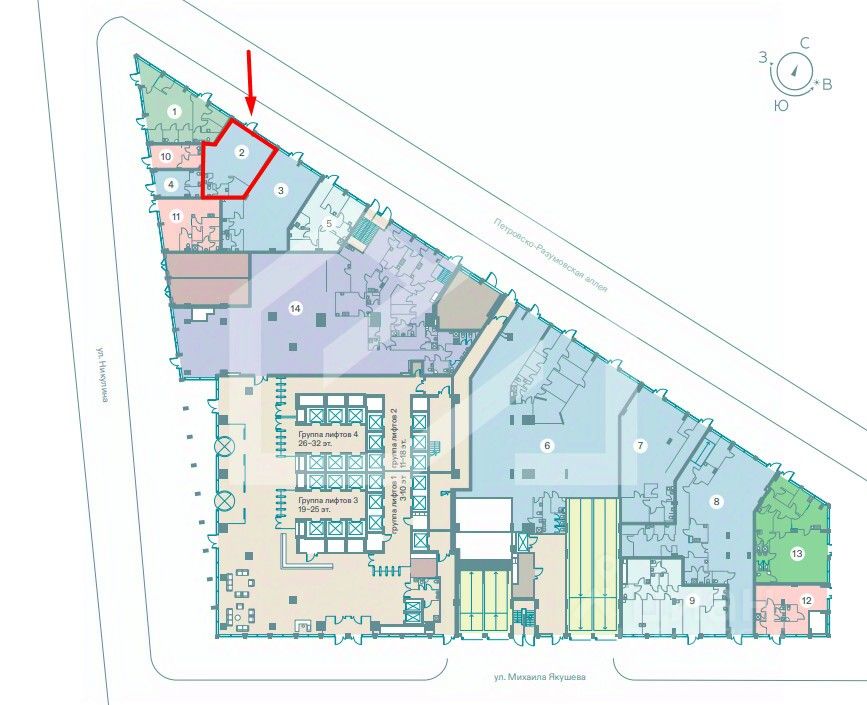 1006812 . Предлагаем помещение свободного назначения формата Street Retail, площадью 95 кв. м., расположенное на первом этаже в бизнес-центре класса Prime "Север". Стилобатная часть здания.