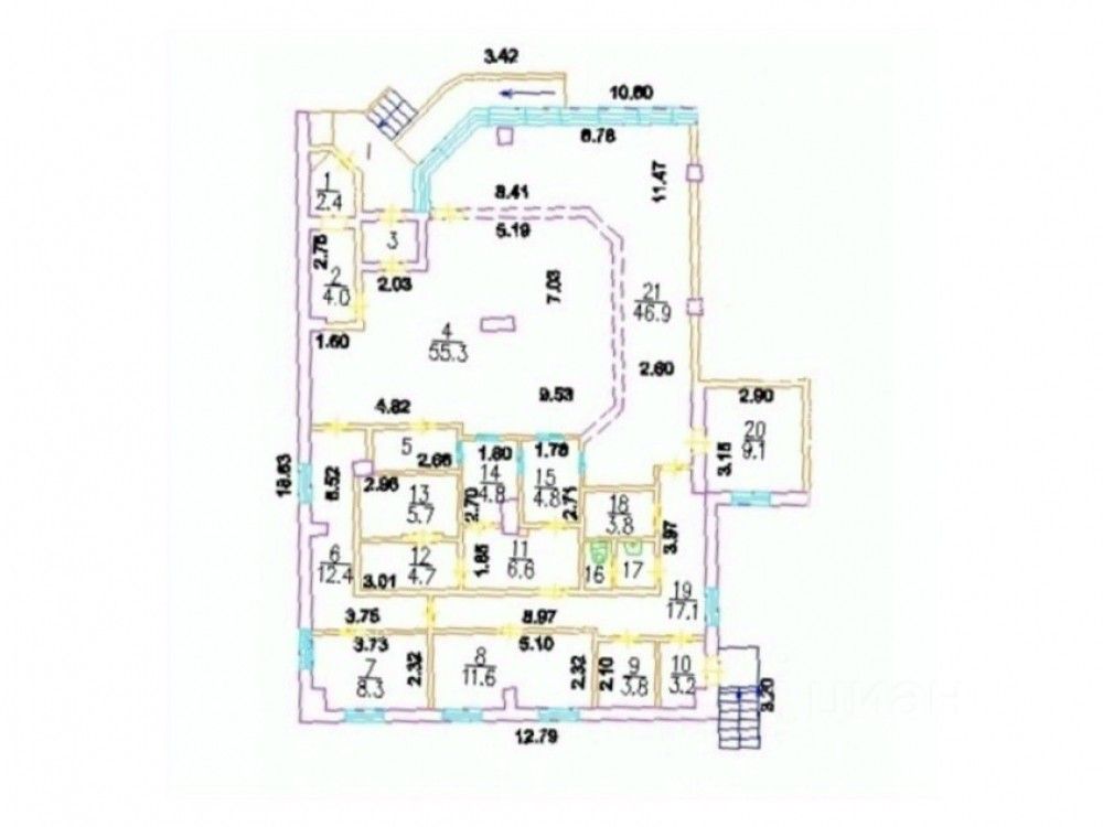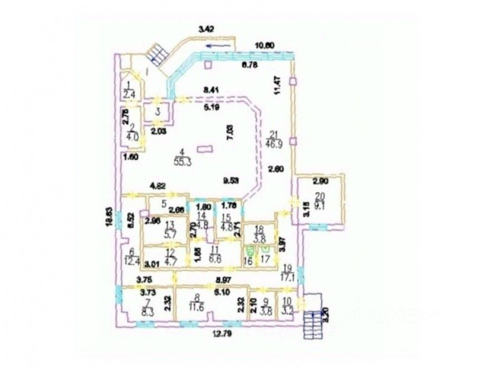 Общая площадь 213,2 кв.м. 1 этаж. Два отдельных входа. Центральные коммуникации. Зальная планировка. Высота потолков 2,7 м. Эл. мощность 51 кВт.