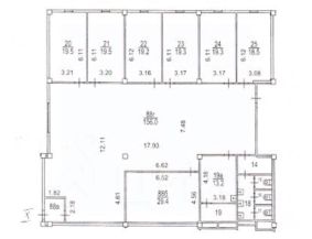 Описание помещения: Офисное помещение состоит из зоны open-space и кабинетов. Сан. узлы в блоке.