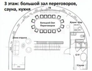 Функциональная планировка - ресепшен, отдельные кабинеты руководителей, конференц-зал, 5+ кабинетов, гостиная, 2 кухни, сан.узлы, зона отдыха, гардероб.