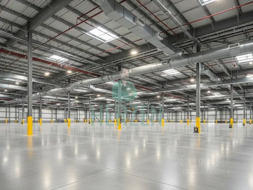 Ровный бетонный пол с антипылевым покрытием. Допустимая нагрузка на пол 9 т/м2. Полы устойчивы к низким температурам.