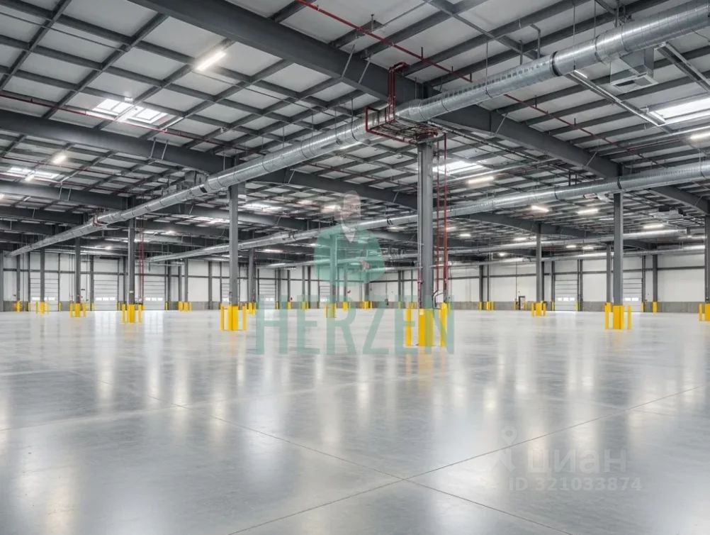 Ровный бетонный пол с антипылевым покрытием. Допустимая нагрузка на пол 9 т/м2. Полы устойчивы к низким температурам.