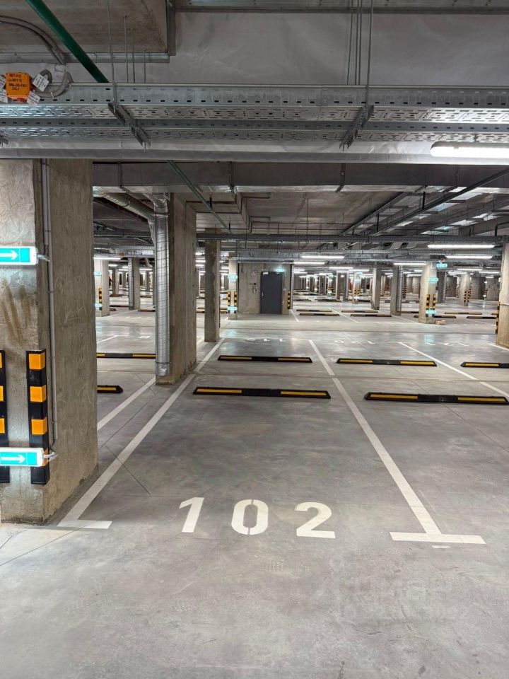 Расположено на уровне -1, рядом с подъездом 5. Спуститься можно по лестнице или на лифте; место одинаково удобно как для корпуса напротив, так и для других подъездов. Подземная парковка отапливается, удобный заезд и выезд на ближайшие улицы. Коммунальные платежи включены в стоимость аренды.Звоните — покажем оперативно.