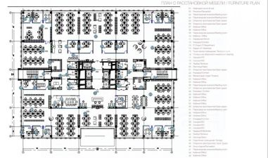 Высота потолков варьируется от 3,5 м до 4,25 м. Инженерные системы запроектированы под рассадку 1 человек на 6 м2. Типовая нагрузка на перекрытия 540 кг/кв.м. Нагрузка на перекрытия в зоне усиления 720 кг/кв.м. На фотографиях помещений представлены проектные решения оформления следующих зон: ресепшен, переговорной и open-space. На схеме корпус указан под номером 1. Юридический адрес предоставляется. В здании оборудован многоуровневый паркинг.