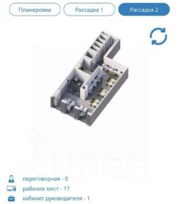 Можно разместить 15 рабочих мест с переговорной, ресепшн и кухней (мокрая точка)