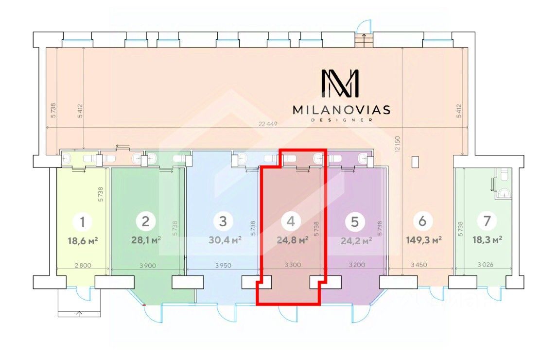 1009785 . Предлагаем помещение свободного назначения формата street-retail, площадью 24.8 кв. м, расположенное на первом этаже 8-этажного жилого дома.