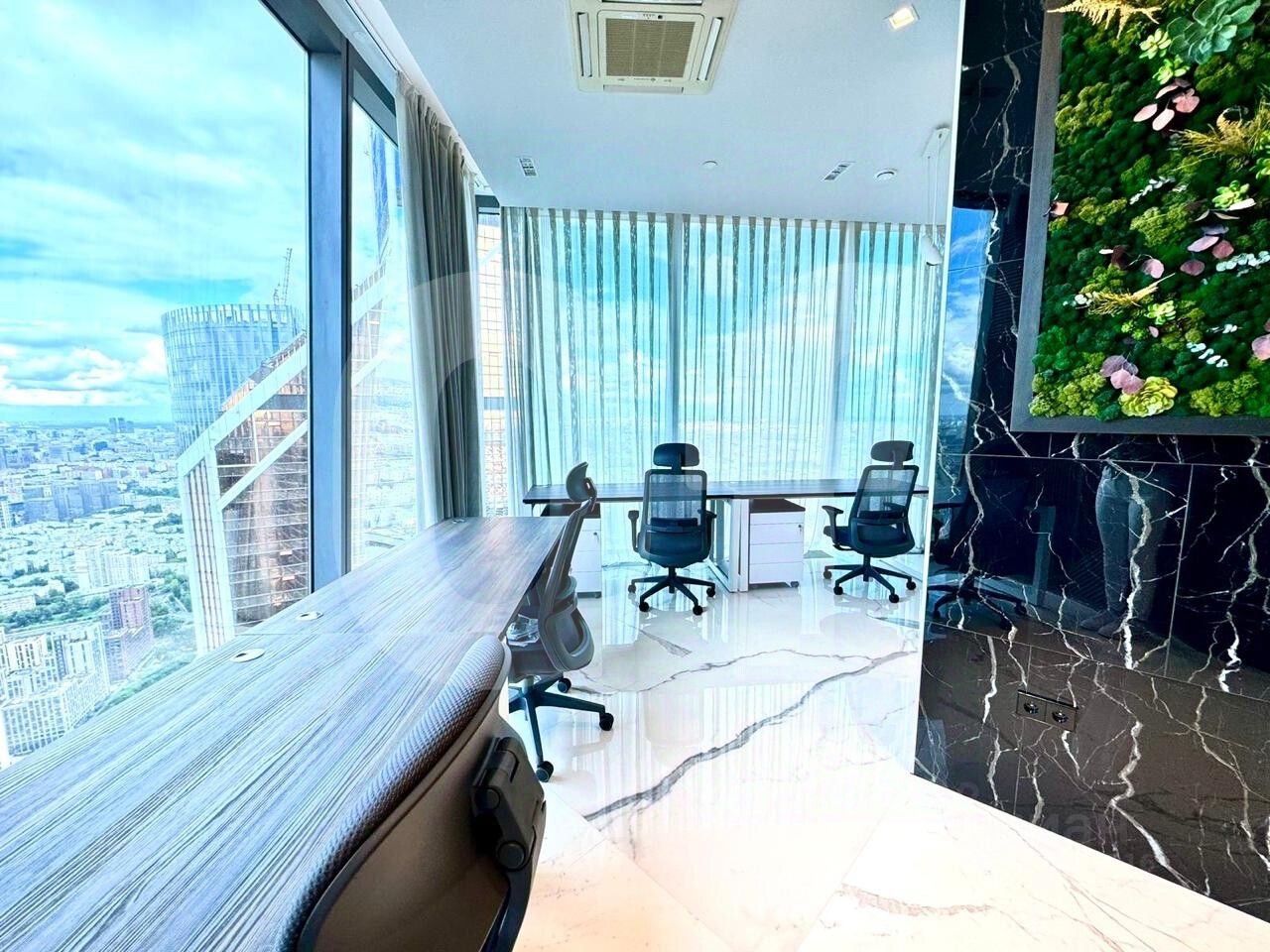 Решение под ключ. Предлагаем в аренду видовой офис площадью 161 кв.м. на 68 этаже. Угловое мебелированное помещение идеально подходит для статусной компании численностью 10-15 сотрудников.