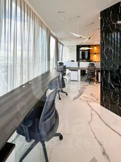 Офис обладает панорамным остеклением с видами на город, элитной меблировкой и продуманной планировкой, подчеркивающей репрезентативный характер пространства. Все инженерные системы и отделка соответствуют высшим стандартам качества.