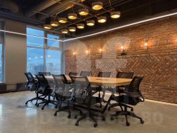 Офис отличается высокими потолками и панорамным остеклением, создающими особенную световую атмосферу. Ремонт выполнен по уникальному дизайн-проекту. Офис полностью укомплектован мебелью и рассчитан на комфортное размещение до 70 сотрудников.
