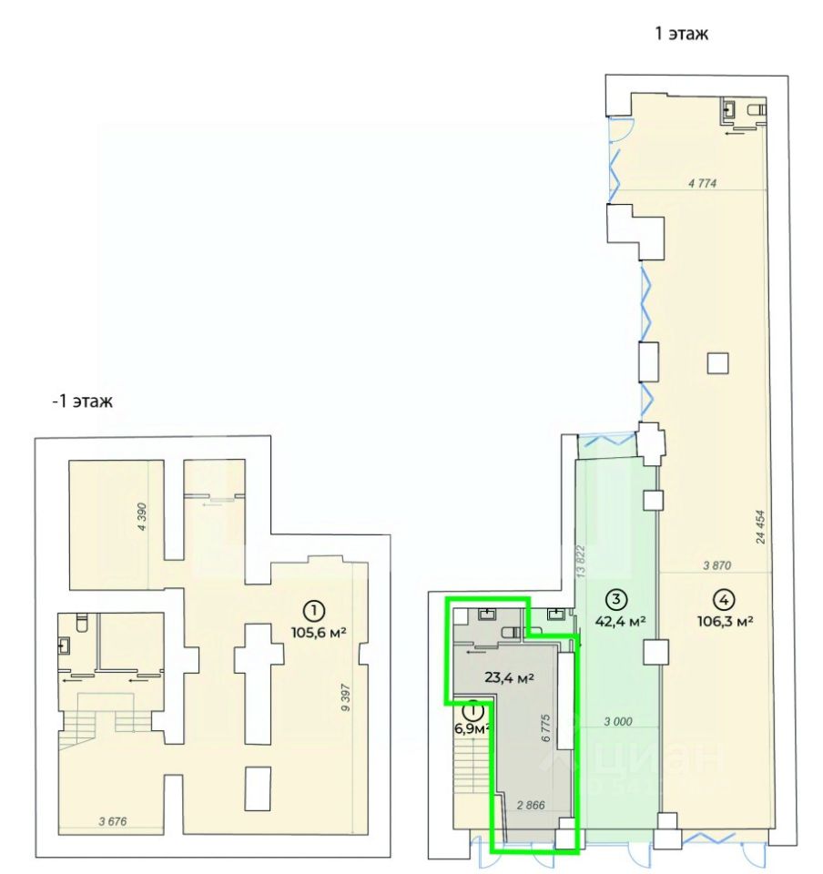 1010128. Предлагаем торговое помещение, площадью 23,4 кв. м., расположенное на 1 этаже 4-этажного административного здания. Блок 2.