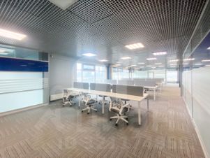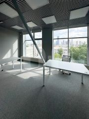 Офис отличается уникальной светопропускаемостью благодаря окнам в пол с трех сторон света. Планировка включает 2 больших опенспейса, множество кабинетов, ресепшен, просторную кухню с полным комплектом техники, серверную комнату, гардеробную, архив и 5 санузлов (включая душевую).