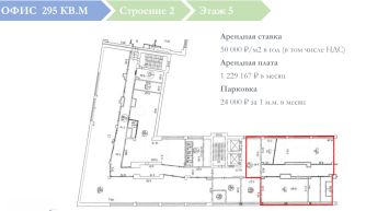 5-й этаж (стр.2) - 295 кв.м, кабинетная планировка, ставка - 50 000 рублей за кв.м в год.