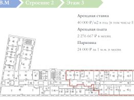 3-й этаж (стр.2) - 683 кв.м, кабинетная планировка, ставка - 40 000 рублей за кв.м в год.