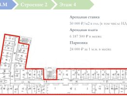 4-й этаж (стр.2) - 1485 кв.м, кабинетная планировка, ставка - 50 000 рублей за кв.м в год.
