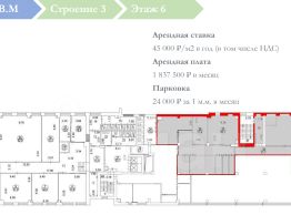 6-й этаж (стр.3) - 490 кв.м, кабинетная планировка, ставка - 45 000 рублей за кв.м в год.