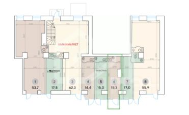 1011852 . Предлагаем помещение свободного назначения формата Street Retail, площадью 15,3 кв. м, расположенное на первом этаже 7-этажного жилого дома. Блок 6.