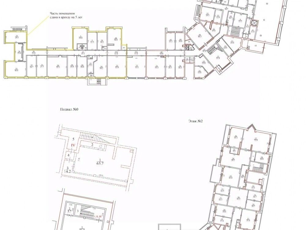 . Первый этаж - 30 помещений кабинетного типа с потолком 3,7м. Возможно создать места для хранения на антресольных полках. Помещения можно объединить в блоки, при необходимости снести ненесущие перегородки. Есть 4 входа с улицы. На первом этаже пристройки имеется большое помещение 300 м2 с витринными окнами и отдельным входом с улицы, с двумя лестницами в подвальную часть (помещение можно разделить на блоки ненесущими перегородками), с доступом через гараж и лифтом в подвал.