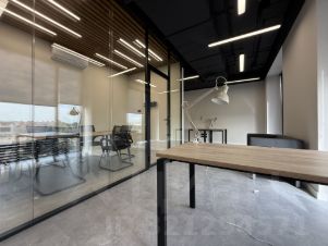 Офис со свежим качественным ремонтом, open-space на 6-8 сотрудников и кабинет руководителя (переговорная), кухня, в прихожей установлен гардеробный шкаф.