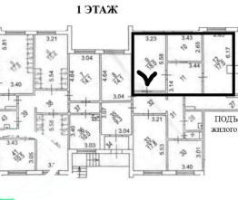 Блок из 4 нежилых помещений класса С находится на 1 нежилом этаже 16-этажного панельного дома 1985 года постройки типовой серии П-3. Общая площадь блока составляет 56 кв.м, 1 кабинет - 18 кв.м, 2 кабинет - 10 кв.м, 3 кабинет - 17 кв.м., рецепция - 11 кв.м, высота потолков 2,64 метра.