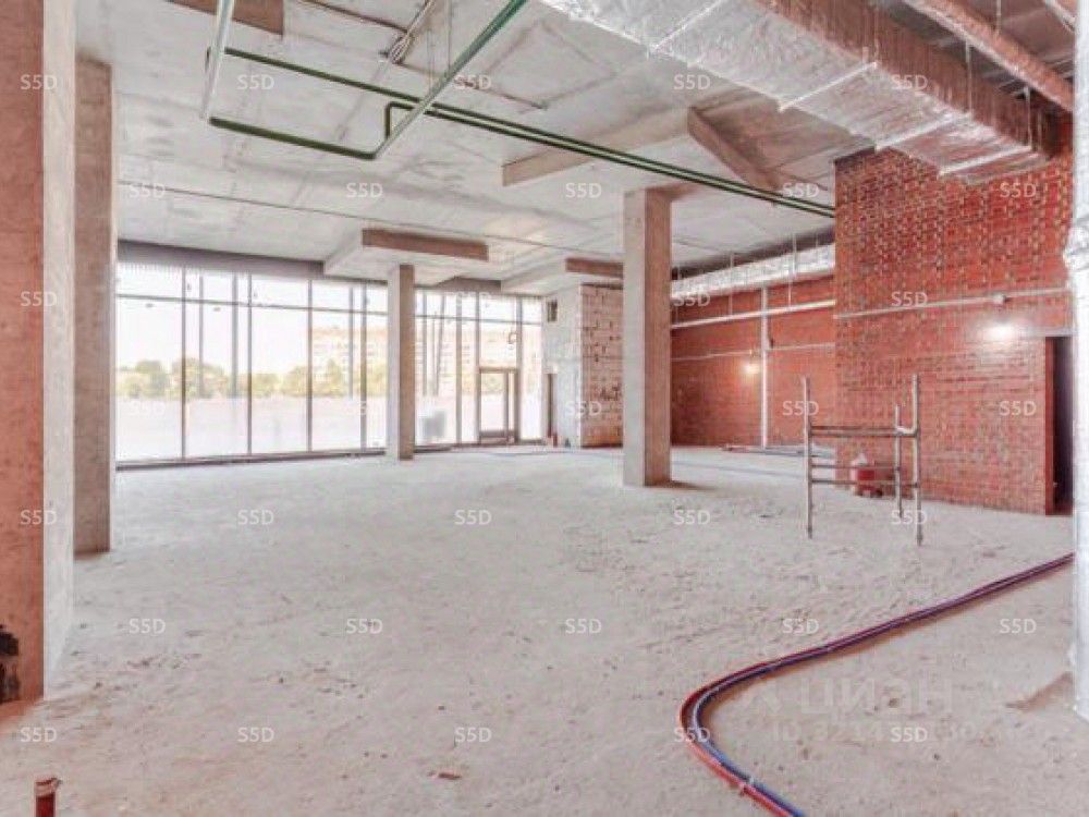 1 этаж 16 этажного жилого дома общей площадью 439 кв.м. (вся площадь в одном уровне), отдельные входные группы с фасада, высота потолков 5,2 м.; Открытая планировка. Разгрузочная зона с секционными воротами. Витринное остекление. Электрическая мощность 131,7 кВт.;