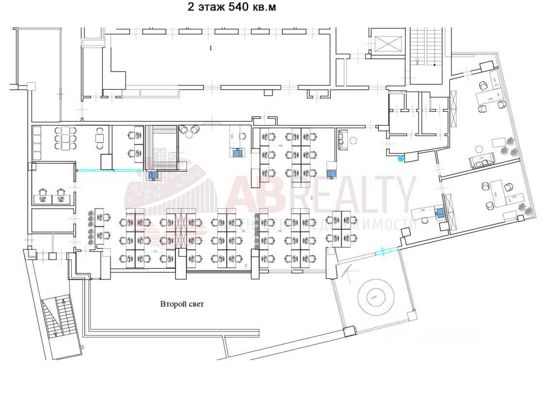 Смешанная планировка: open-spaces, кабинеты, переговорная, кухня, свой санузел.