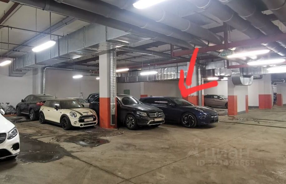 Просторное двойное семейное машиноместо у стены(за ограничителем можно сложить несколько комплектов резины или поставить велосипеды;)