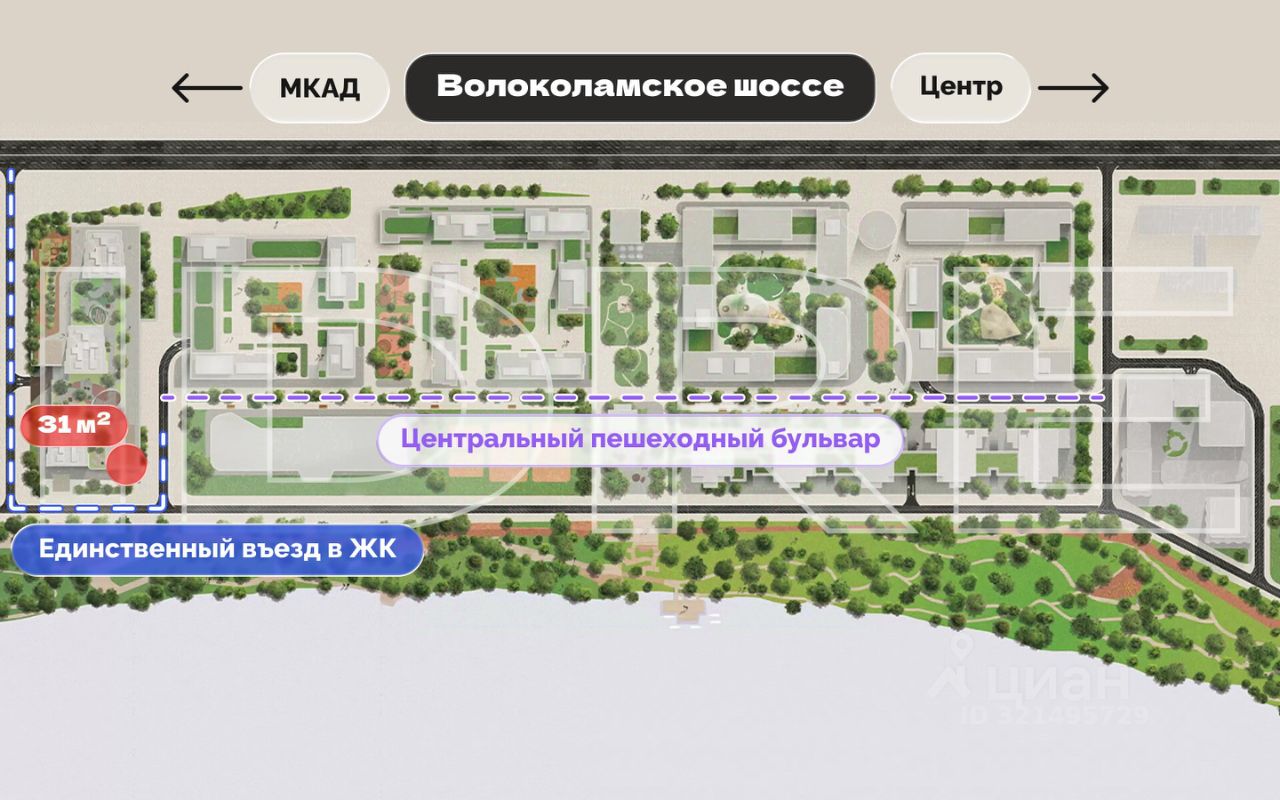 Пересечение Волоколамского шоссе и МКАД, рядом Москва-река и собственная набережная.