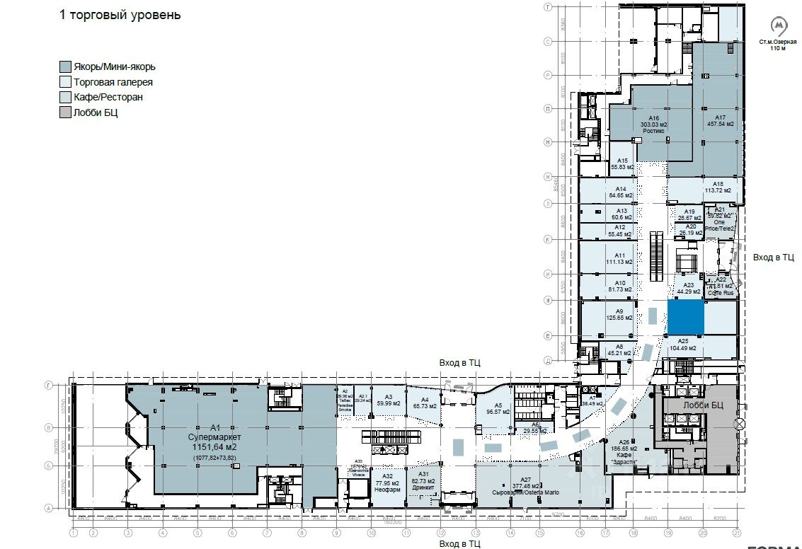 - Стоимость: 15% от товарооборота, но не менее 545 000 рублей в месяц (без НДС) или 50 000 руб/м² в год (без НДС);