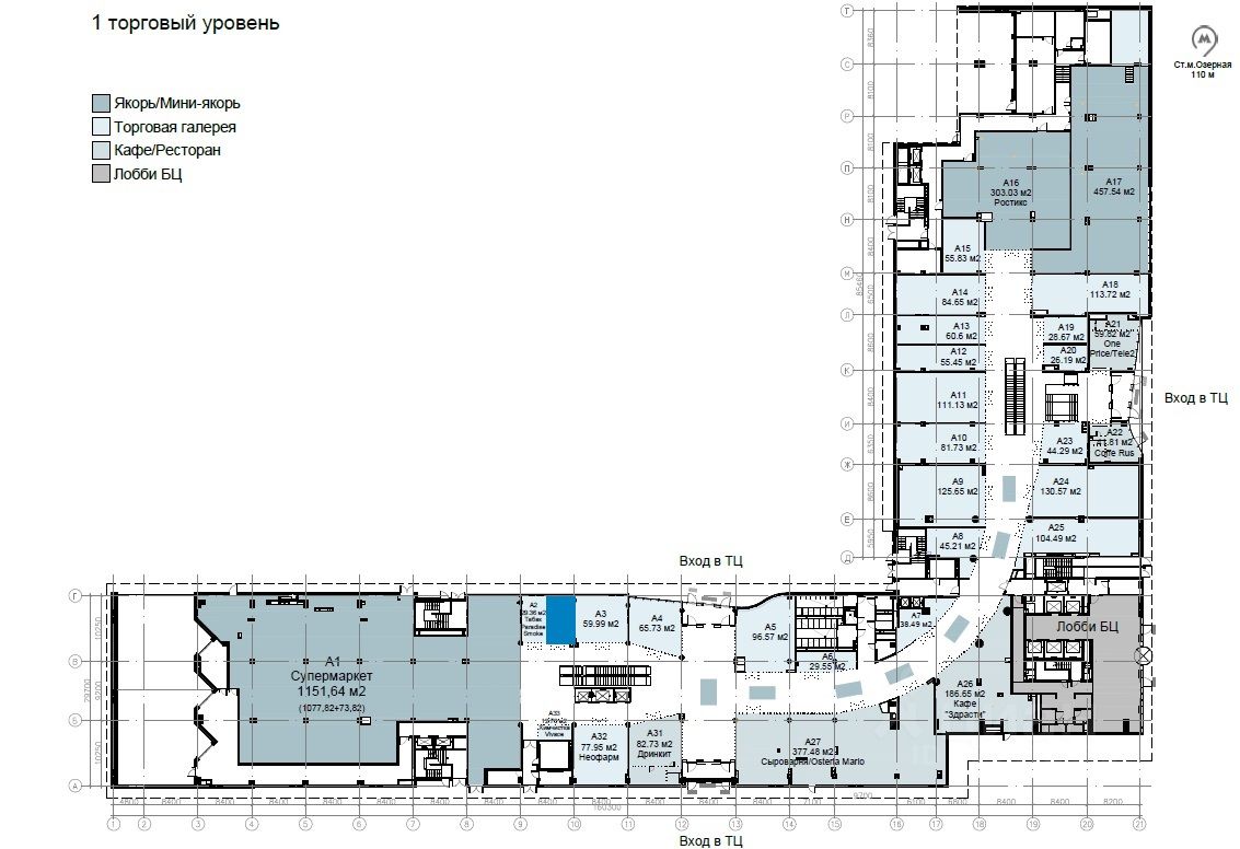 Торговое помещение 30 м² в прикассовой зоне супермаркета в новом Торговом Центре Lakes на первом этаже около входа в ТЦ.