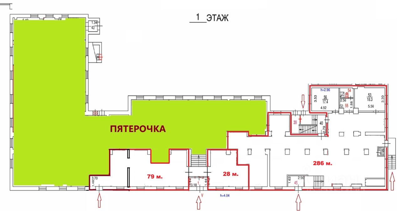 Арендное соседство в здании: супермаркет Пятерочка.