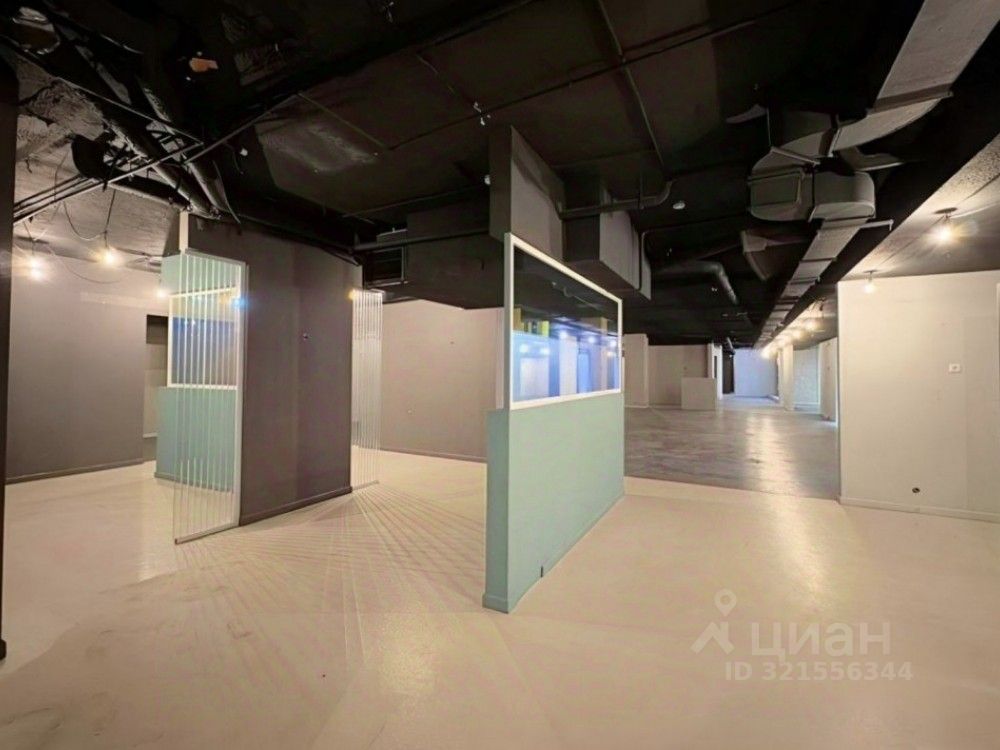 . Занимает 2 подвальных этажа, смешанная планировка, ремонт за выездом арендатора (шоурум мебели). Центральный зал с потолком 6,2м и антресолью с потолком 2,7м. Выделенная мощность 150квт. Есть кабинеты с с/у и душевыми, кассовый блок, серверная, В здании приточно-вытяжная вентиляция, сплит-системы кондиционирования, наземная парковка.
