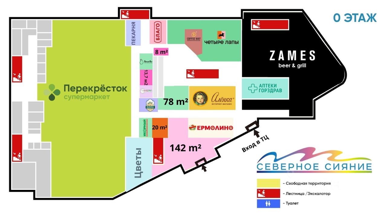 Помещение в крупном районном ТЦ Северное Сияние в прикассе супермаркета Перекресток